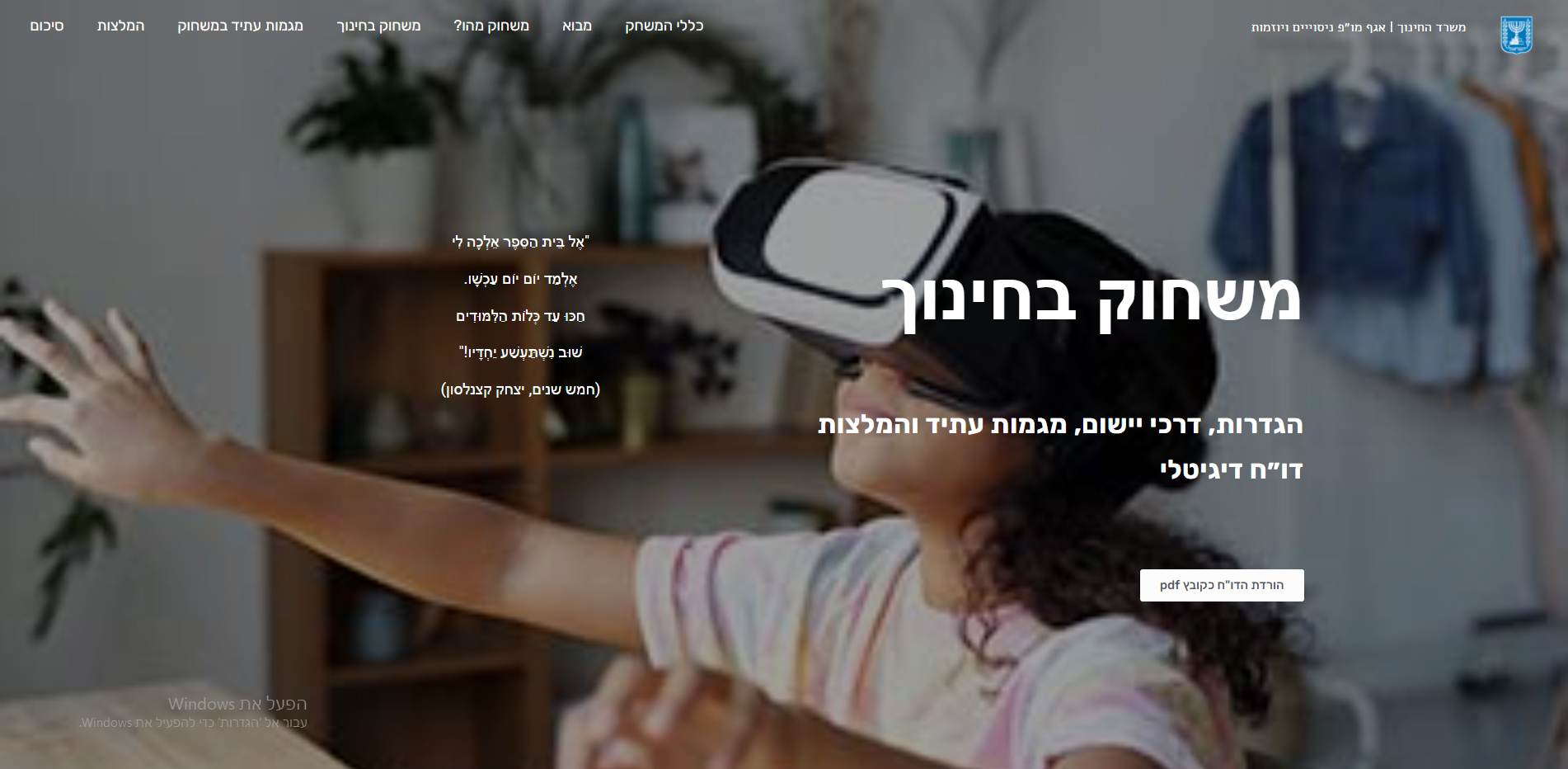 הדו"ח מגדיר את המונח משחוק ומפרט את מרכיביו; סוקר דוגמאות ליישום של משחוק בדגש על עולם החינוך; סוקר מגמות עתיד במשחוק; מציג המלצות ליישום דרך מודל "פדגוגיה מוטת עתיד", ואתגרים הניצבים לפתחה של מערכת החינוך בבואה ליישם את תפיסת משחוק בבתי הספר.